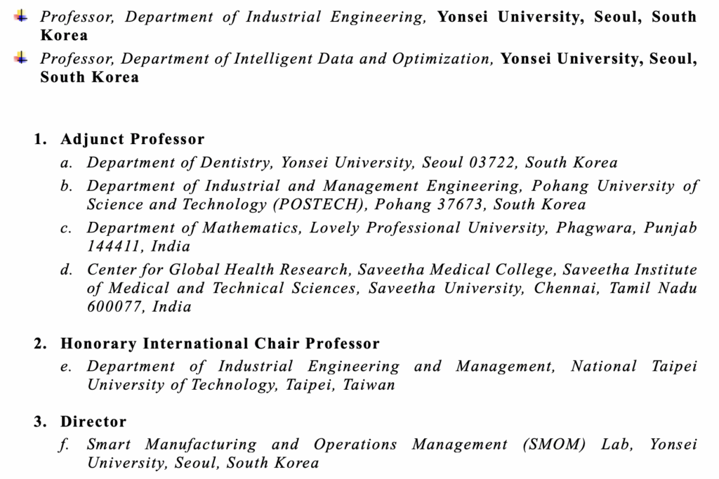 - Belongs to the Top 2% of Scientists in Operations Research in the World based on the Stanford Study in 2023 (Overall rank – 31930, Operations Research – 11, Environmental Science – 18).